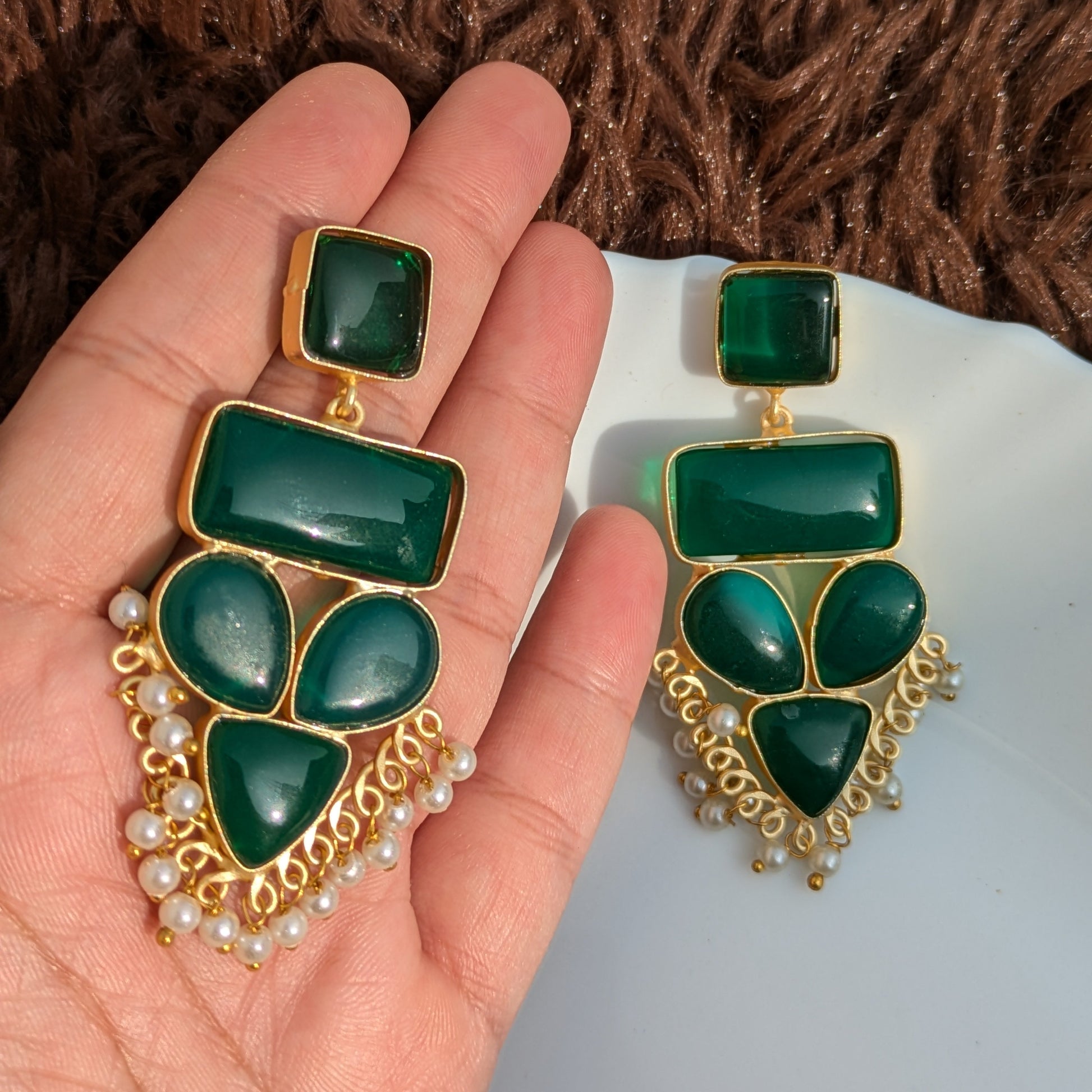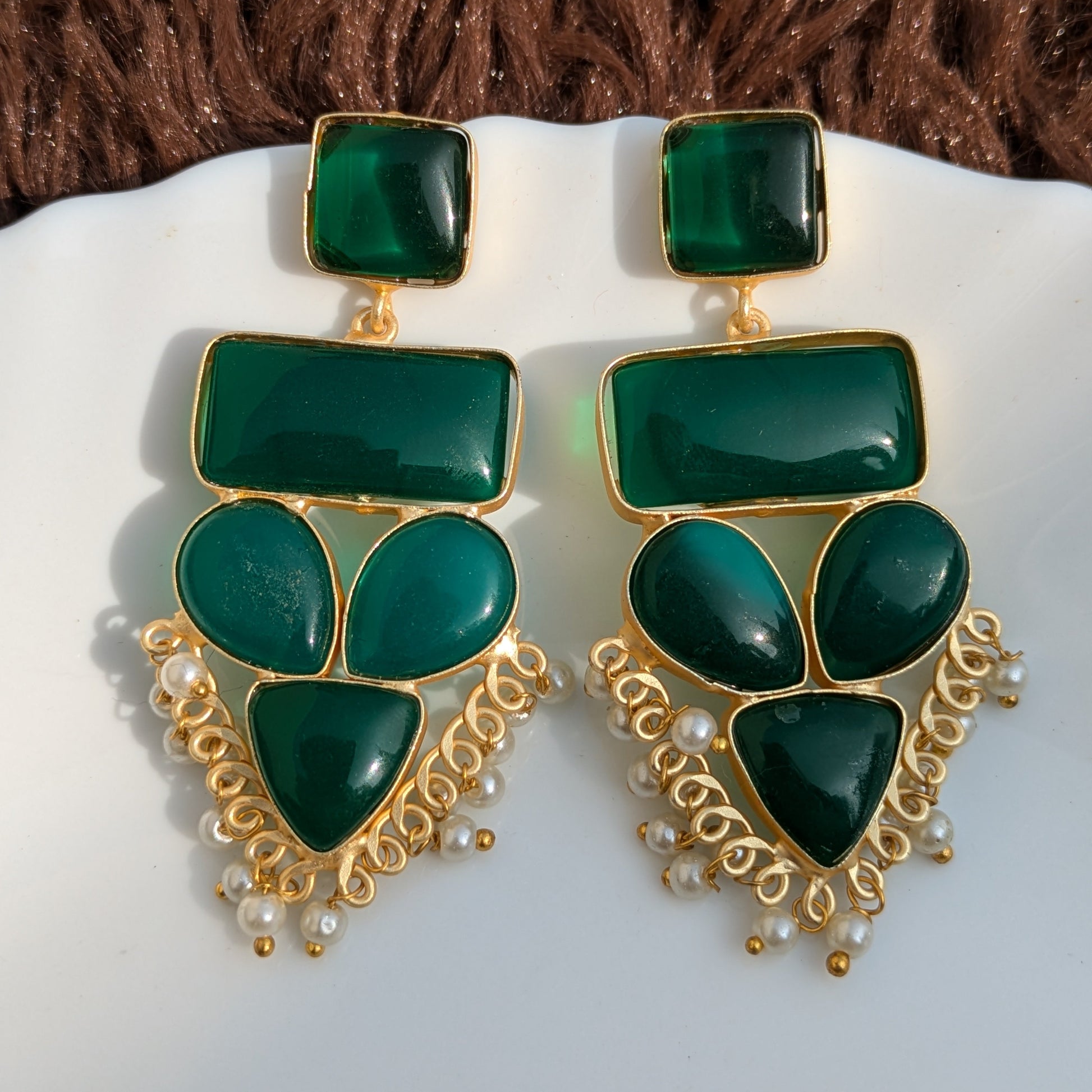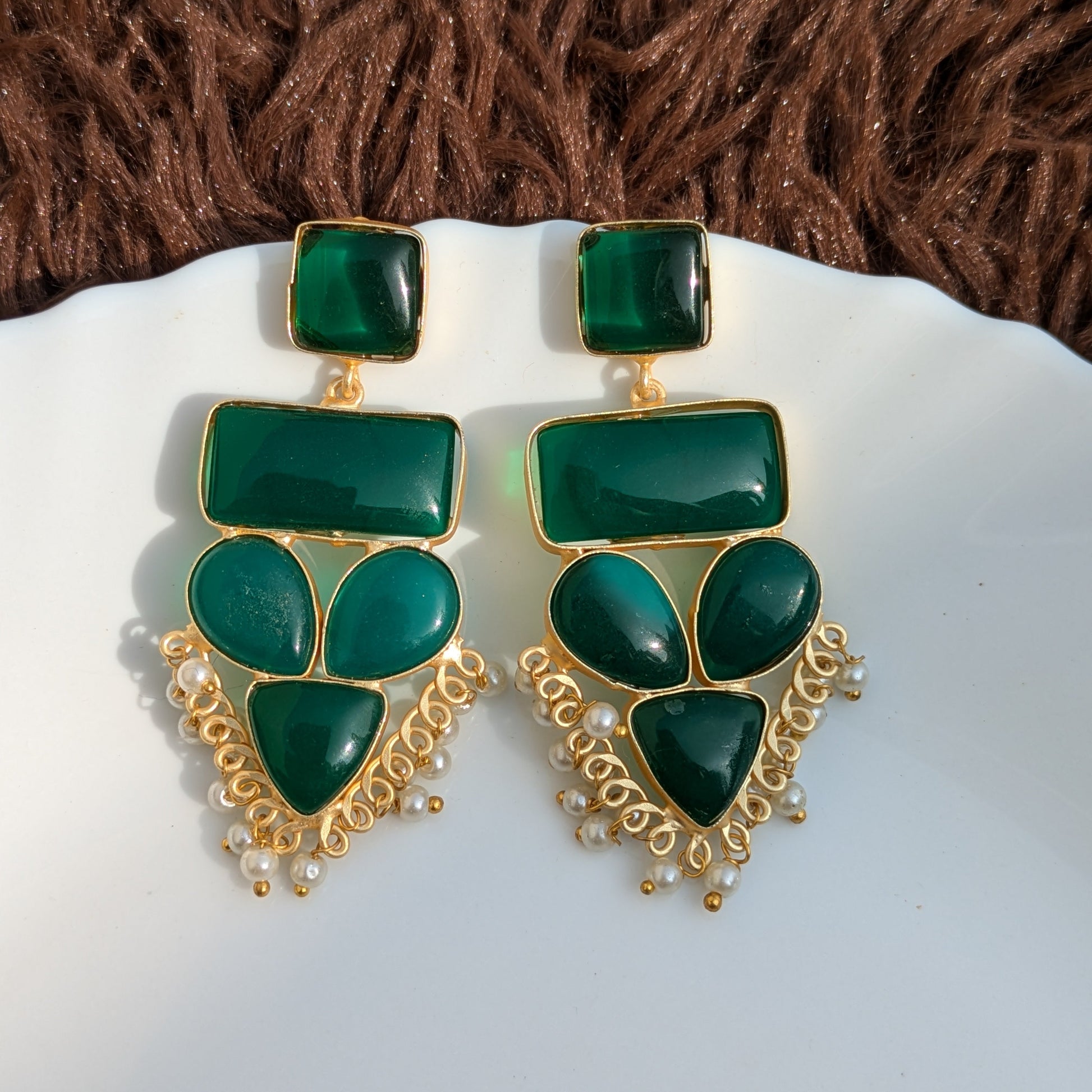 Green Geometric Monalisa Stone Earring
