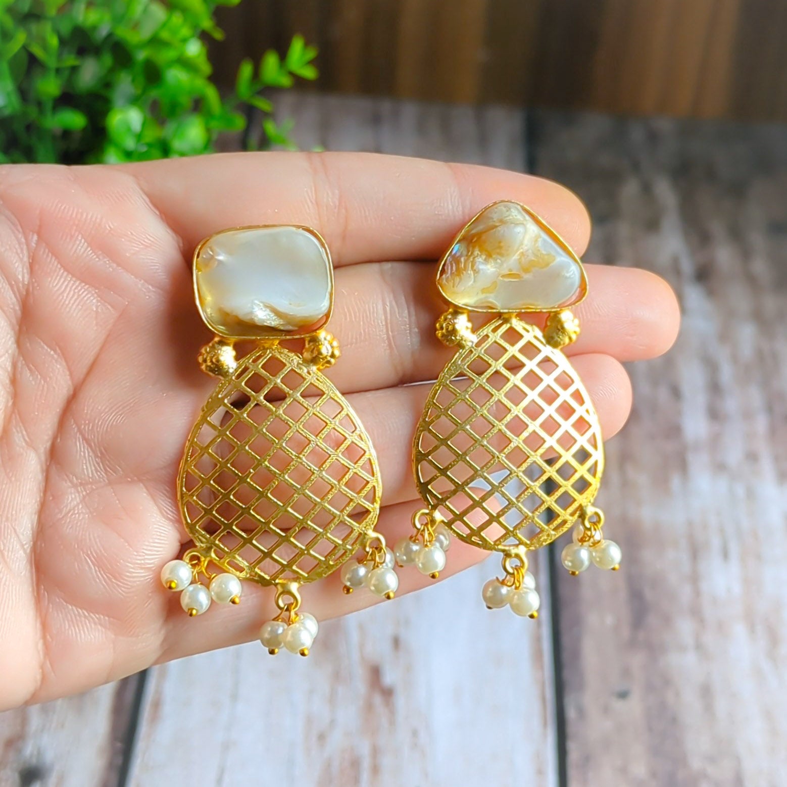 Mother Of Pearl Brass Earring
